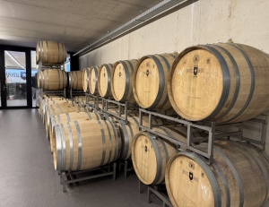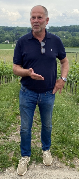 seit 2020 auch Viognier. (https://www.apostelhoeve.com/de)Wir waren nicht die einzige Besuchergruppe am heutigen Tag und wir konnten erkennen, dass das Weingut sehr gut auf Besuchergruppen eingestellt ist und diese auch gerne und professionell durch Weinberg, Kelterei und Weinkeller mit anschließender Verkostung führt. Wir wurden von Mathieu Hulst, dem Chef, persönlich empfangen. Während seiner Führung erzählte er uns vom Weinbau in den Niederlanden und von der Geschichte dieses Weinguts. Schon die alten Römer bauten in dieser Gegend Wein an. Im späten Mittelalter ging der Weinbau jedoch vollständig zurück. Erst in den 1970er Jahren wurden die ersten Reben an den südlichen Hängen des Jekerdals auf dem Apostelhoeve wieder gepflanzt. Hugo Hulst, ein Obstbauer, hatte beschlossen hier einen Weinberg anzulegen. Mit den Auswirkungen des Klimawandels wurde ab ca. 1985 der Weinanbau einfacher. Apostelhoeve produziert heute mehr als 110.000 Flaschen Wein. Stolz berichtet uns Mathieu auch, dass sein Auxerrois in der Osteria Francescana in Modena, das mehrfach zu einem der besten Restaurants der Welt gekürt wurde, angeboten wird. Der Betrieb arbeitet weitgehend vollautomatisiert, gelesen wird seit 10 Jahren mit einem Vollernter. Viognier und Grauburgunder werden zum Teil auch im Barrique ausgebaut. Die Fässer werden i. d. R. zwei bis drei Jahre benutzt.